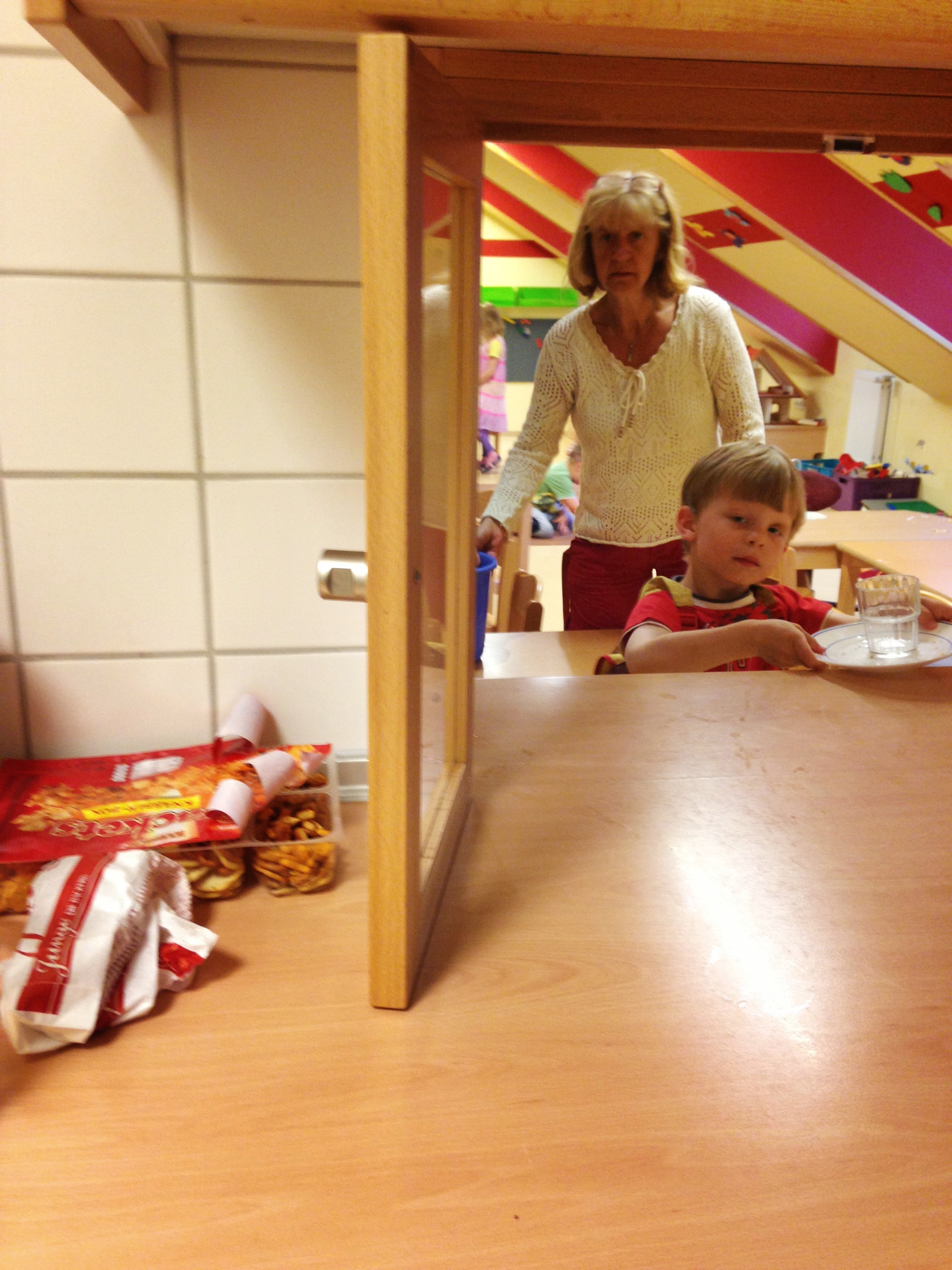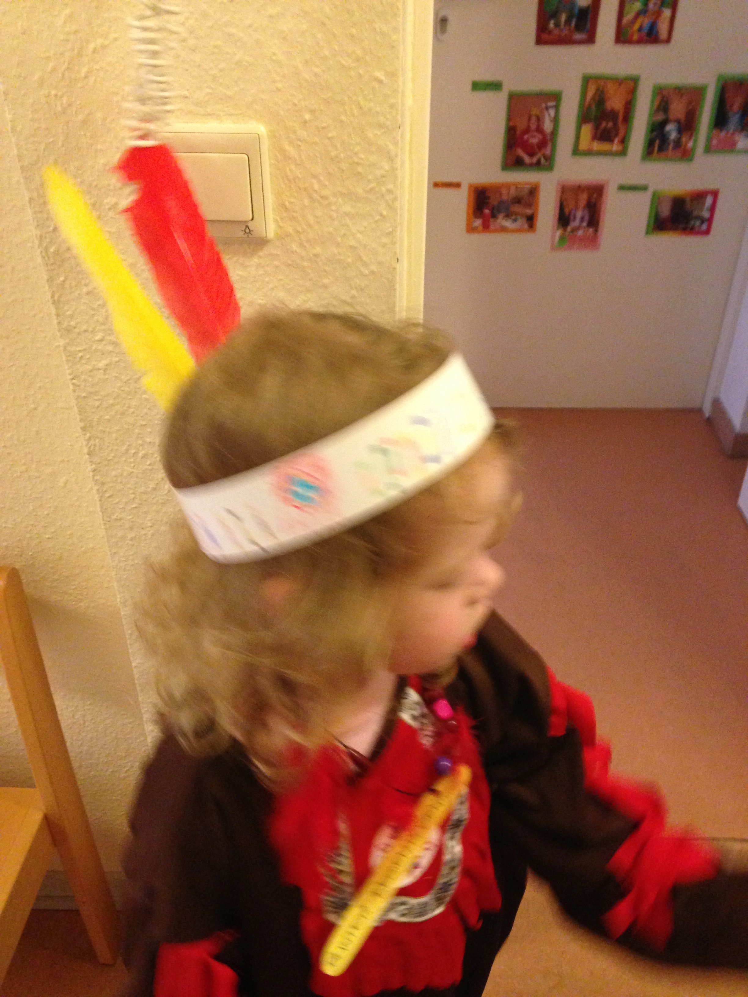 Here is the tipi outside of the Kita I visited. Yesterday was the last day of school across Germany and in this institution, teachers and kids were preparing for their “Indiana” party which actually involved a strong American Indian theme. German boys of yore came of age to the writing of Karl May, who wrote pulpy novels that romanticized American Indians. There’s even an annual re-enactment of May’s books about an Apache and his German sidekick, Old Shatterhand.